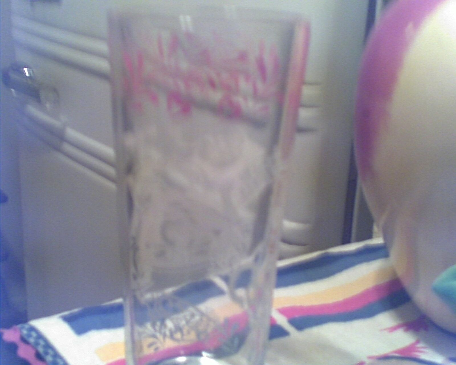 This glass in pink and blue pastels is a great find for 49 cents. I think I've had some like this before. Who cares about a matched set? I love mixing all my vintage glasses with pretty colors together!